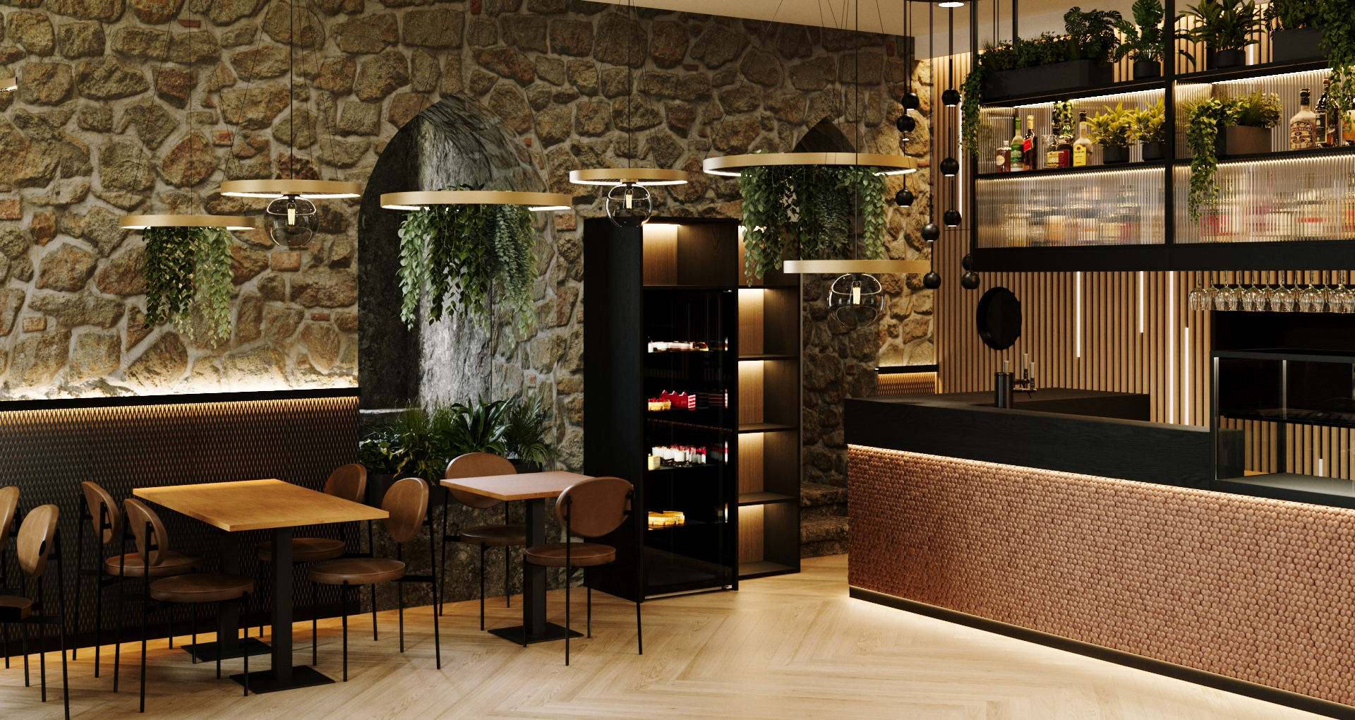 Um espaço onde o design se mistura com a experiência sensorial. Este projeto foi pensado para criar um ambiente acolhedor, fluido e sofisticado, onde cada elemento — da iluminação aos materiais — convida à permanência. A combinação de texturas naturais, tons quentes e detalhes personalizados transmite identidade e conforto, elevando a experiência gastronómica a um novo nível.